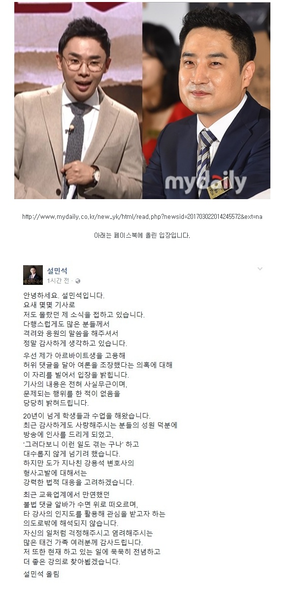 댓글알바 의혹 설민석 공식</h1> <div class="entry-content clearfix"> <p><title>댓글알바 의혹 설민석 공식입장 페북글