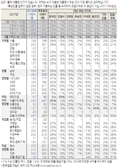 문재인 호남에서도 44% 나왔고